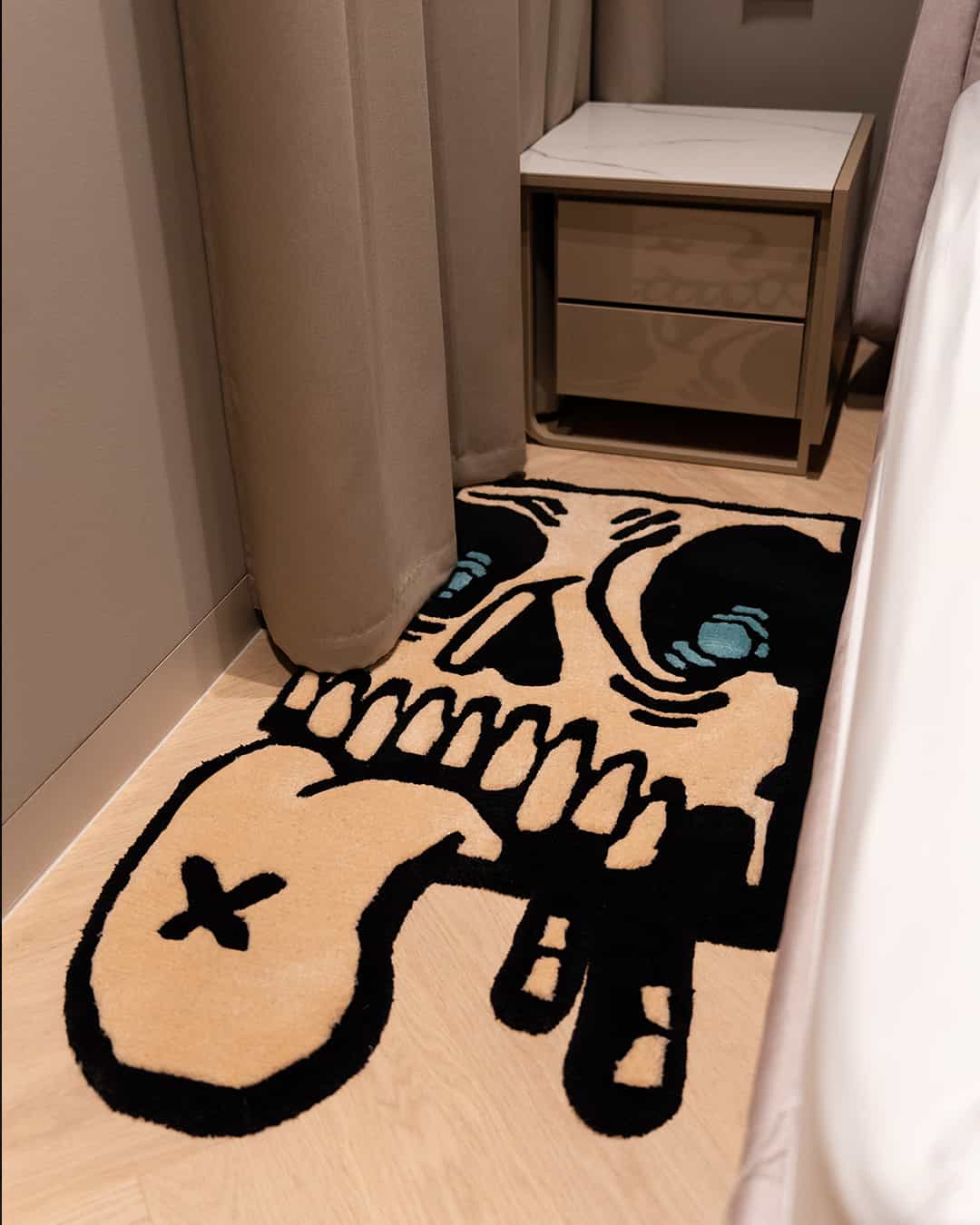 This rug showcases a c of a ghoul, with eerie details that evoke a sense of mystery and intrigue. Its dark, atmospheric imagery adds a touch of the supernatural to any space, making it the perfect statement piece for those drawn to the mystical. A bold blend of art and function, this rug brings a unique, edgy vibe to your decor.