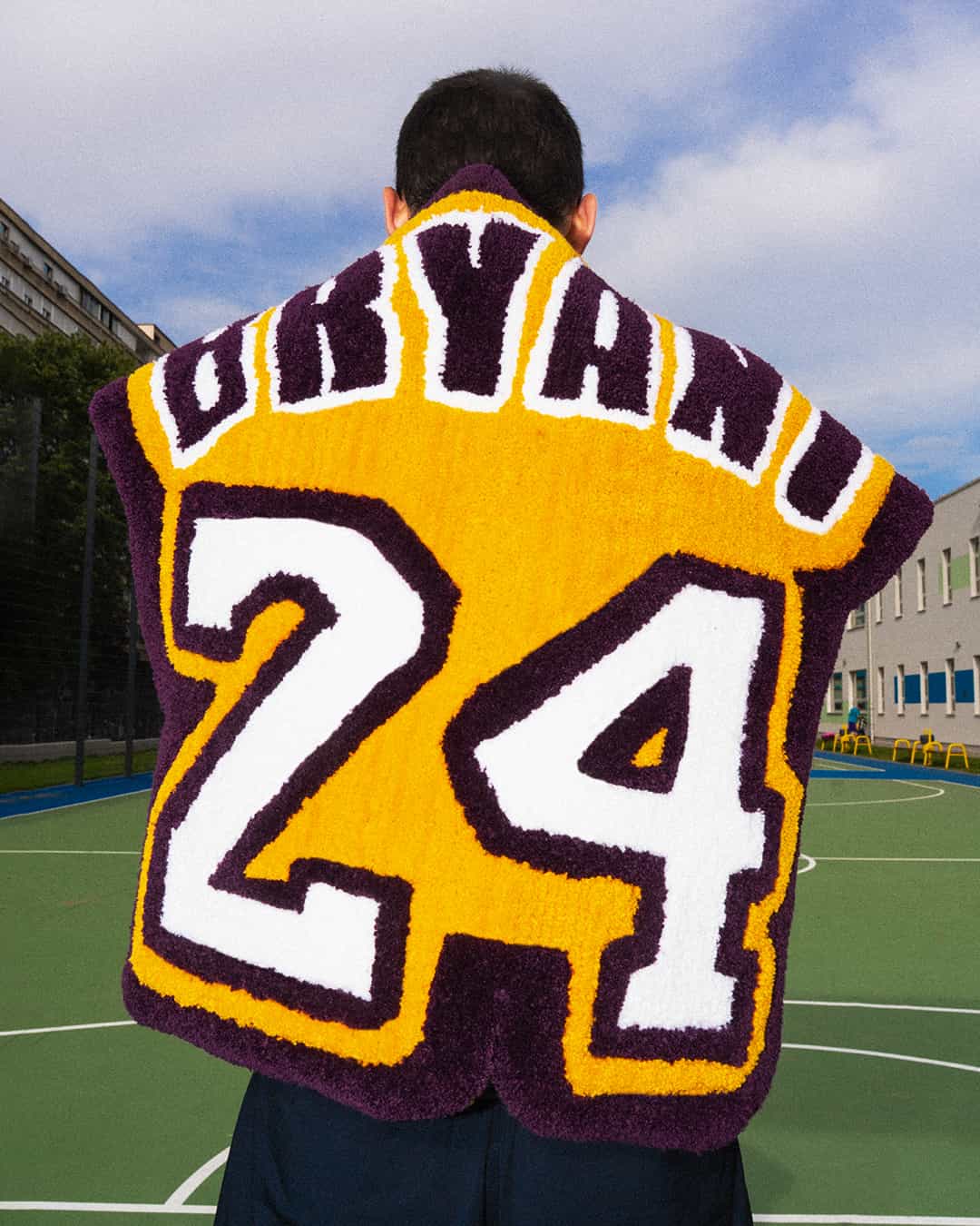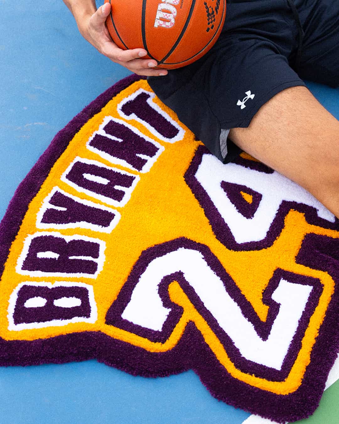 Celebrate basketball greatness with this hand-tufted rug inspired by Kobe Bryant’s iconic Lakers jersey. Featuring the classic purple and gold color scheme with bold detailing, this rug is a tribute to the Mamba Mentality. Crafted with high-quality yarn, it’s perfect for Lakers fans, sneakerheads, and sports enthusiasts looking to add a legendary touch to their space. A true statement piece honoring one of the game’s greatest.